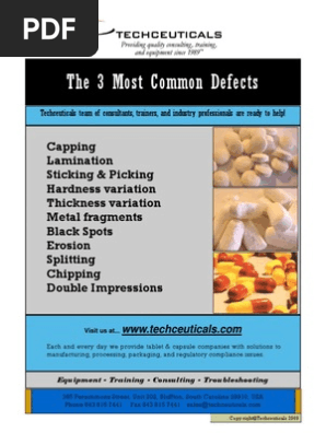 Tablet capping and lamination powder compaction is widely used to produce pharmaceutical tablets and is referred to as a tabletting process.